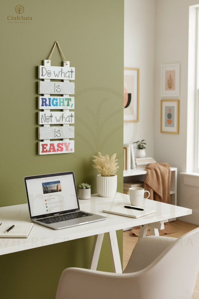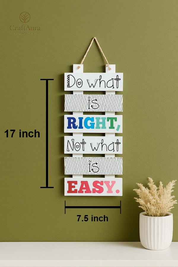 Add daily encouragement to your walls with this beautifully crafted wooden motivational sign. Featuring the powerful quote “Do what is right, not what is easy”, this wall hanging is designed to inspire positivity, strength, and focus in your everyday life.