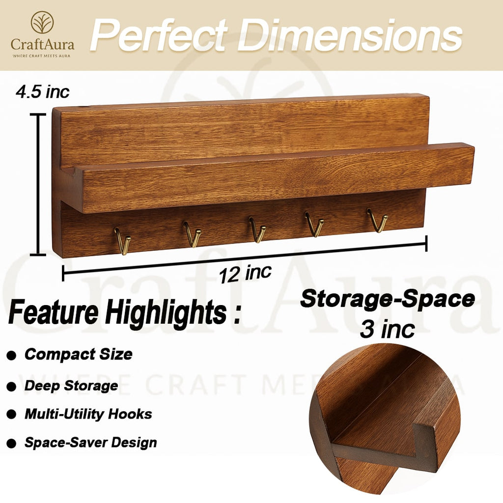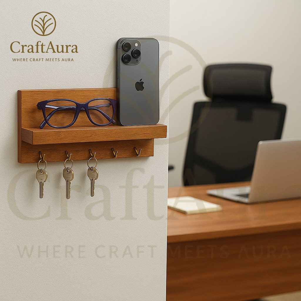The CraftAura Premium Wooden Wall Key Holder is more than just a utility piece – it’s a beautifully crafted décor item designed to keep your essentials organized while adding warmth to your walls.